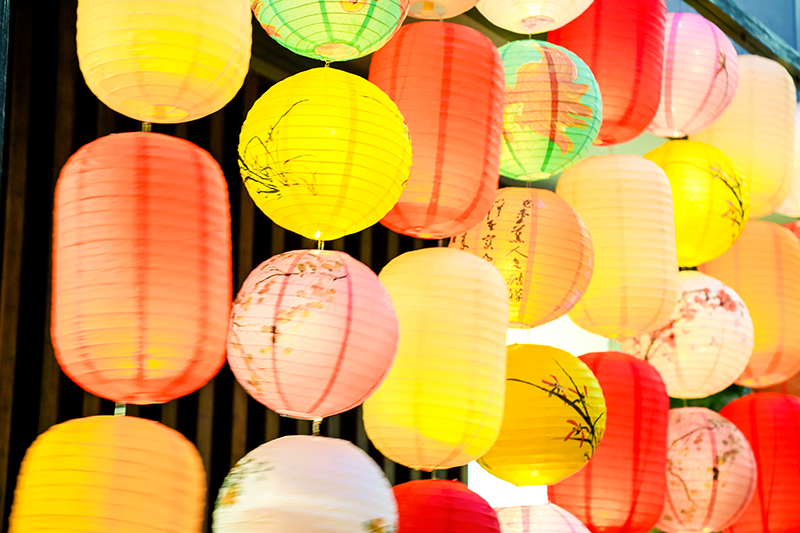 猜灯谜、赏灯景、品桂花酒、特色团扇