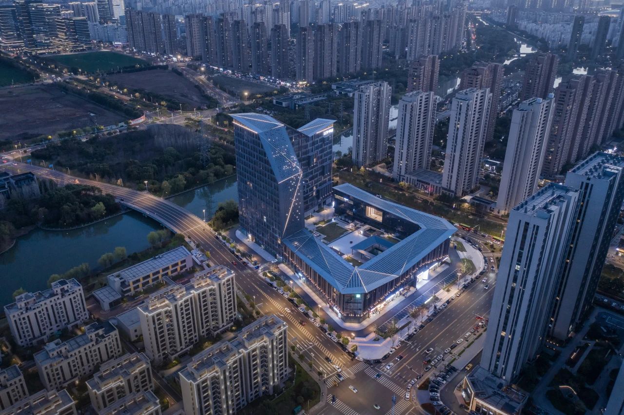 在项目设计上,建筑师没有选择传统城市居住体系单一的点式或板式布局,而选择将300米长的街区界面进行围合,以一个完整而灵动的形体,让建筑同时具有内外两种性格,对外呈现连绵的山峦,以起伏的天际线柔化城市的轮廓。裙房朝向内庭院开放多个露台,不同季节、不同时段,露台呈现不同的艺术氛围。这小小的一方园地也总是会有常州最潮流最有人气的活动发生,音乐会,脱口秀,手作市集等接二连三的活动,不断为这座城市微山增添新的色彩。