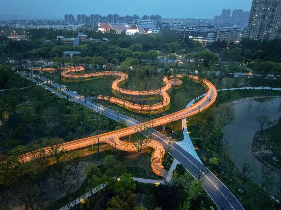 报告讲述了上海西岸自然艺术公园多维绿道通过“自然链接、功能复合、空中绿洲、消隐共生”四大策略,将城市慢道系统与生态保护深度融合。设计以低干预原则保留原生乔木,架空栈桥贴近香樟林营造林间穿行体验,串联绿地与城市空间,形成立体化生态走廊。项目融合休闲、运动、观景等功能,打造“空中绿洲”与四季花境,实现人与自然互动。其“串绿成线、串珠成链”的设计理念,不仅激活区域生态价值,更通过慢行系统促进城市流量经济,获评生态修复与城市更新示范案例。